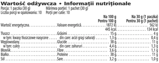 Acest produs reprezintă o gustare sănătoasă ce poate fi consumată în orice moment al zilei. O soluție ideală pentru cei care doresc să își controleze greutatea corporală și caută o alternativă mai sănătoasă pentru gustările din timpul zilei.