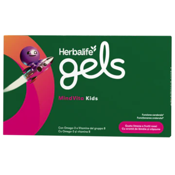 Herbalife Gels MindVita Kids conține o combinație de ingrediente special selectate pentru creierul și corpul în dezvoltare al copiilor tăi – este o modalitate nouă, delicioasă, distractivă și ușoară de a suplimenta dieta copiilor tăi.